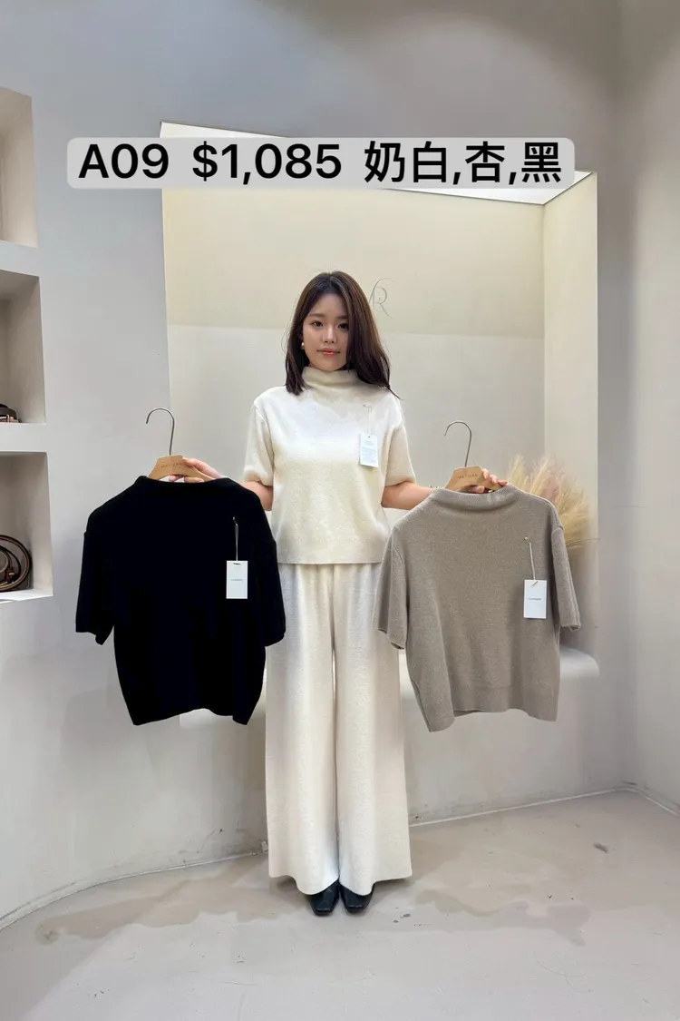 A09 半高領短袖上衣(羊毛60,羊絨15)