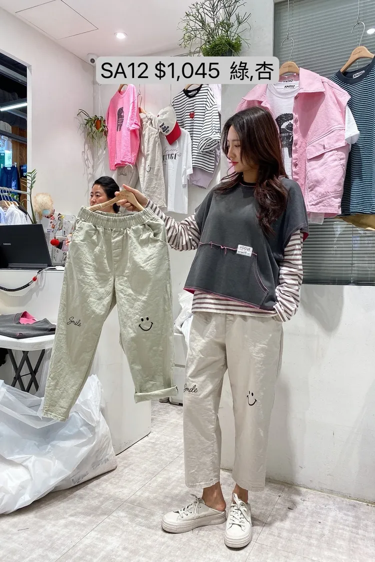 SA12 彈性腰笑臉刺繡九分褲