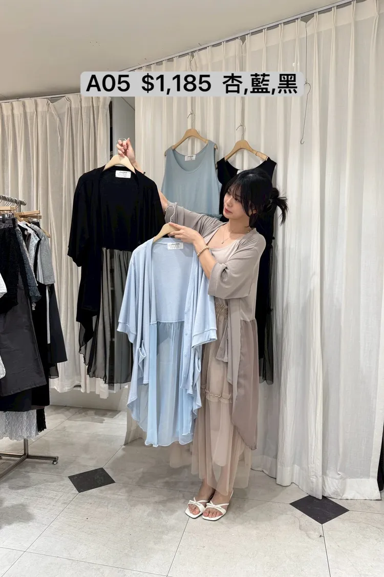 A05 異材質拼接雪紡口袋罩衫外套