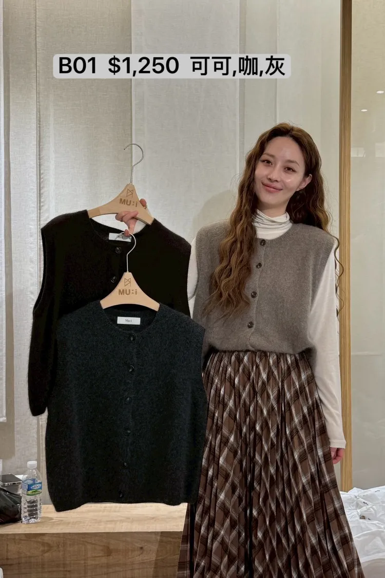 B01 排扣背心上衣(羊毛25,浣熊毛25,狐狸毛25)