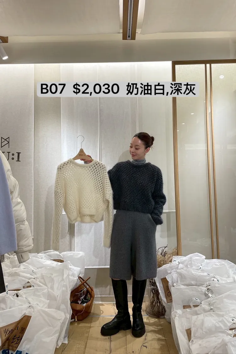 B07 洞洞針織上衣(馬海毛32,羊駝毛32,羊毛17)
