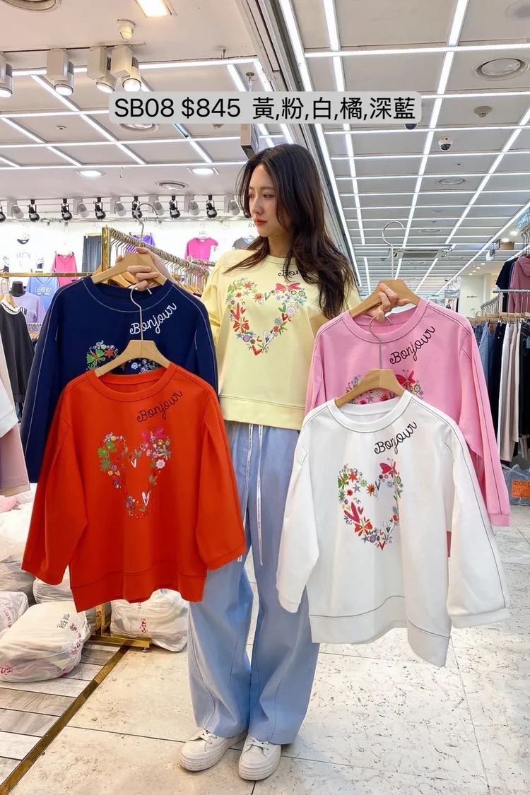 SB08 愛心花朵印花七分袖上衣