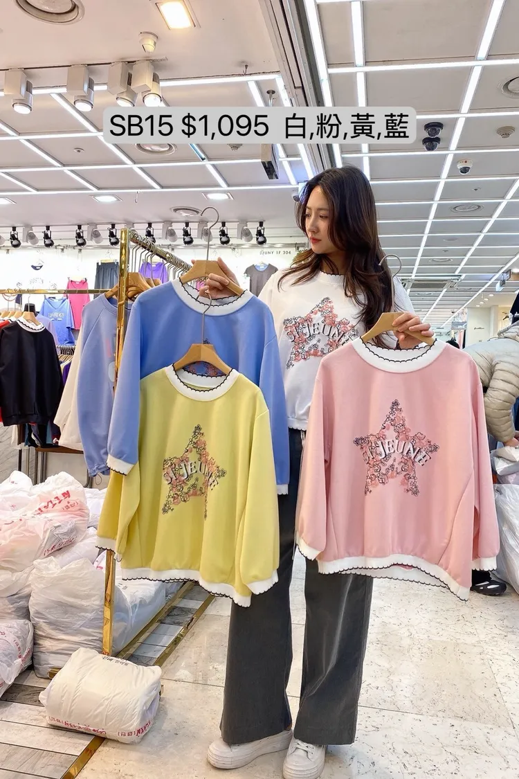 SB15 波浪黑邊花朵星星上衣