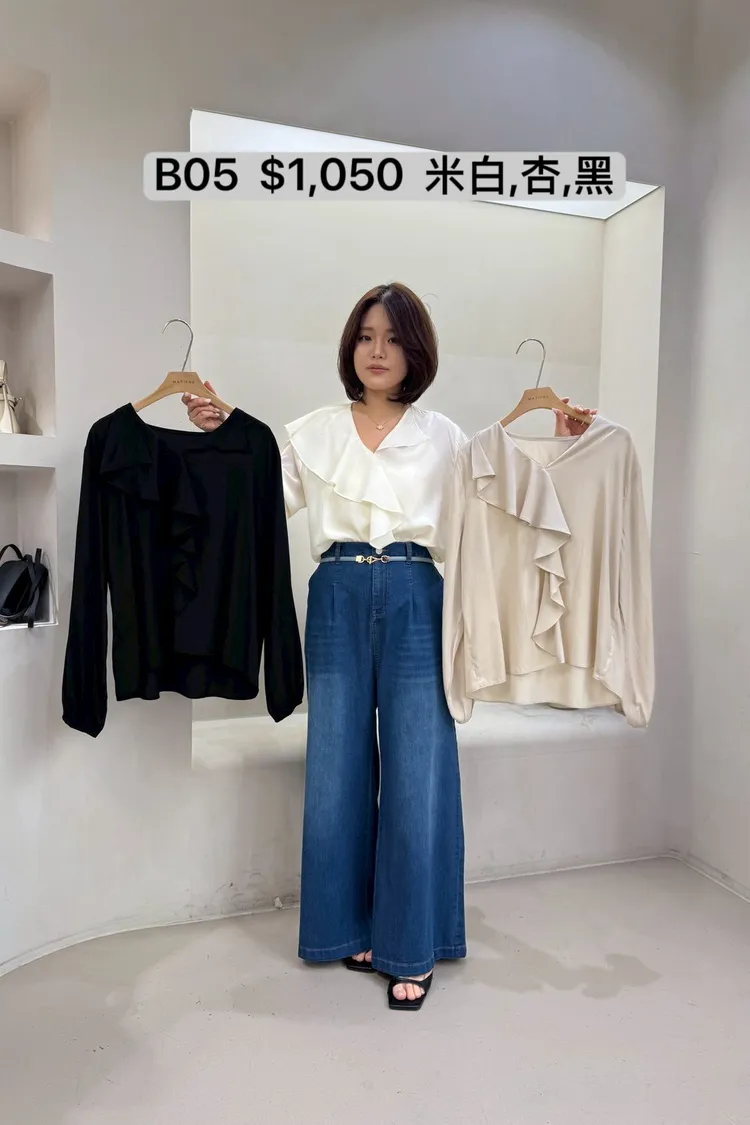 B05 V領荷葉波浪雪紡上衣