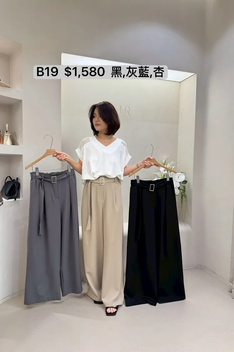 B19 腰帶造型寬褲