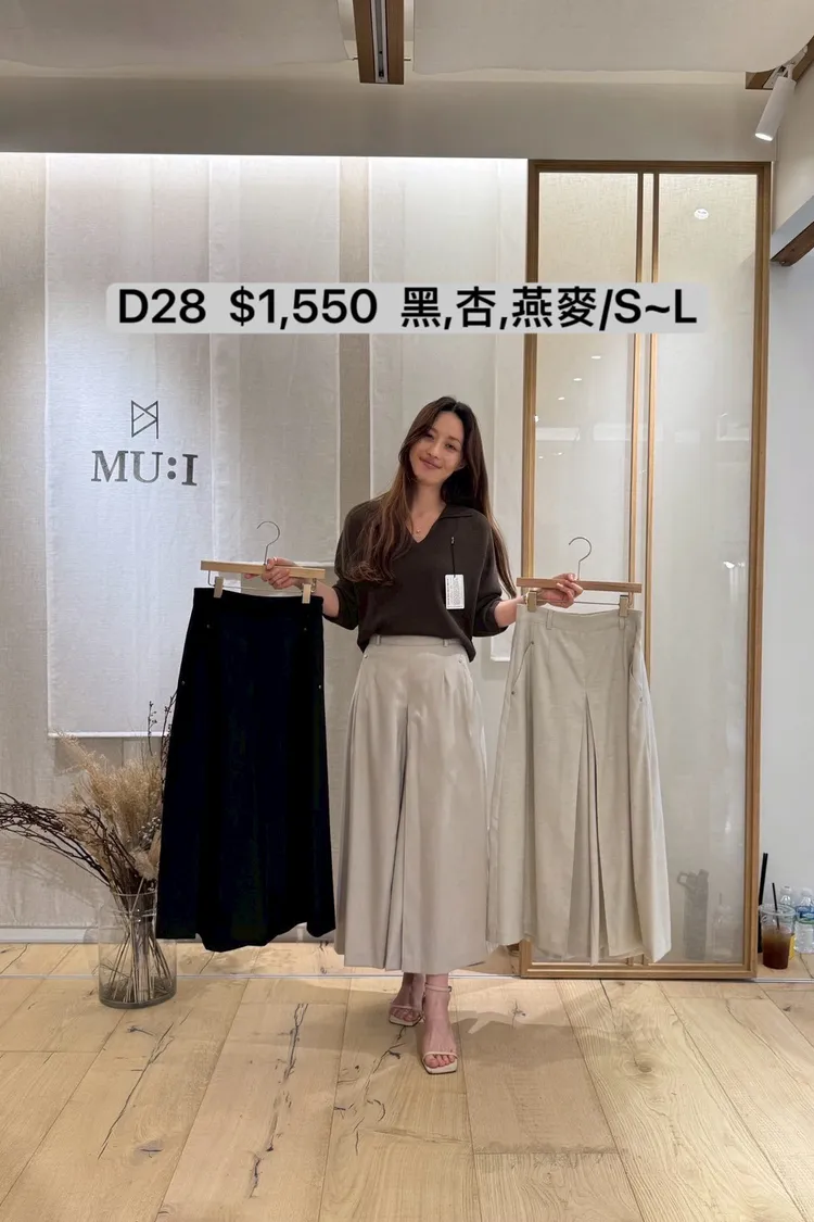 D28 壓褶褲裙(poly75 人造絲20 亞麻3)