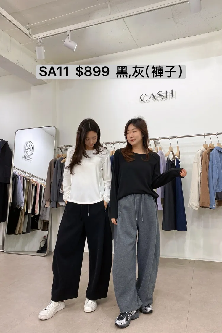 SA11 鬆緊腰抽繩彎刀綿長褲