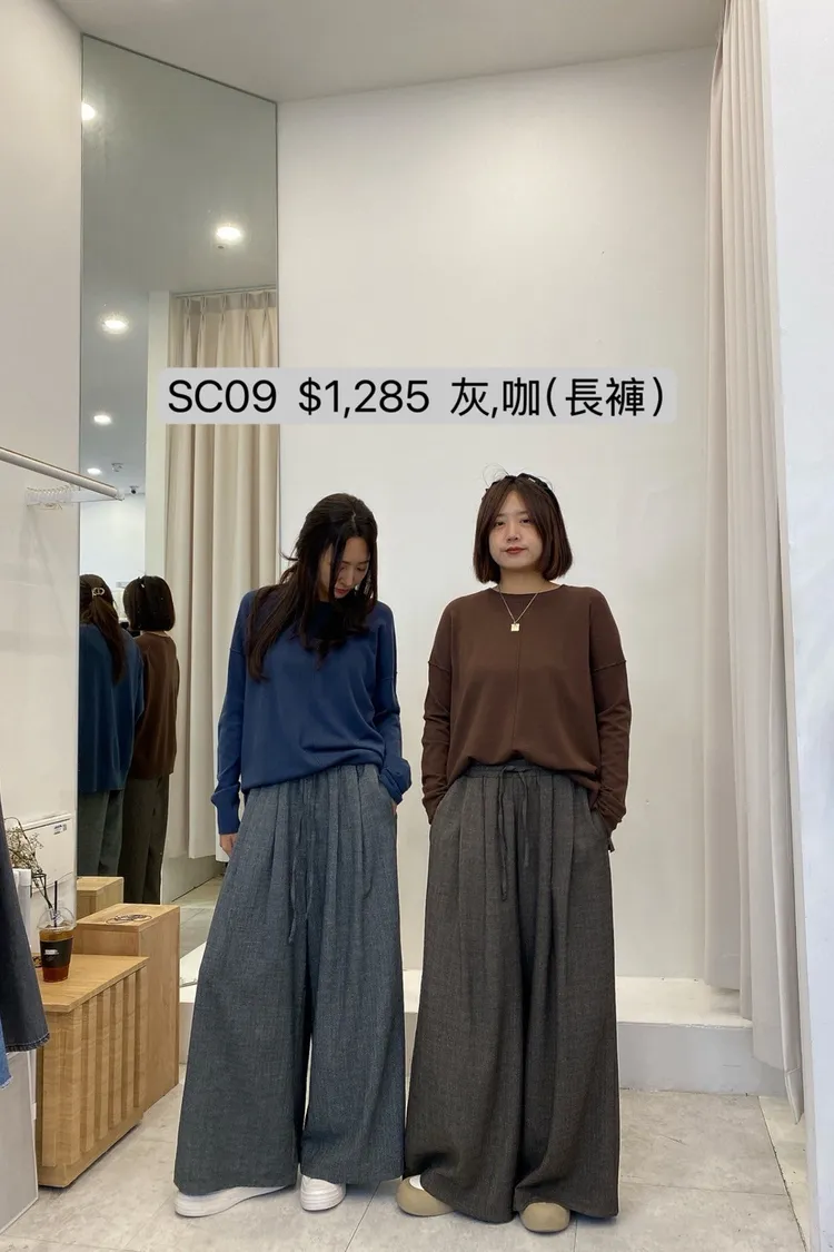 SC09 全鬆緊抽繩格紋西裝寬長褲