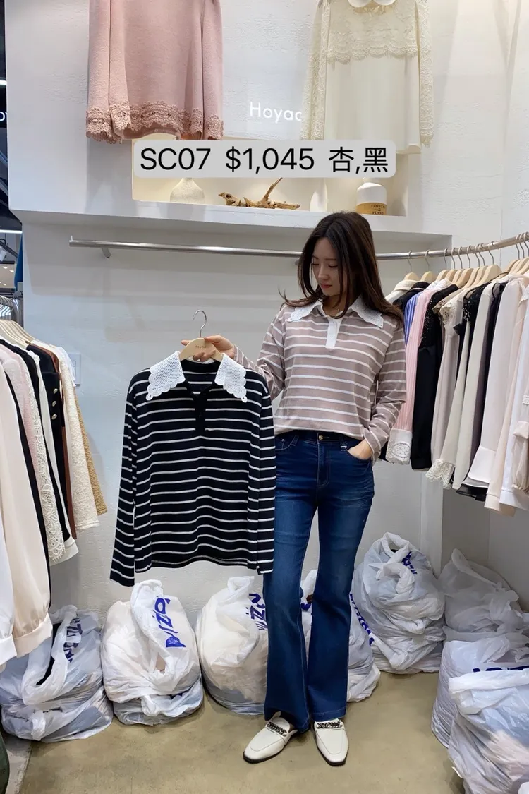 SC07 蕾絲領條紋上衣