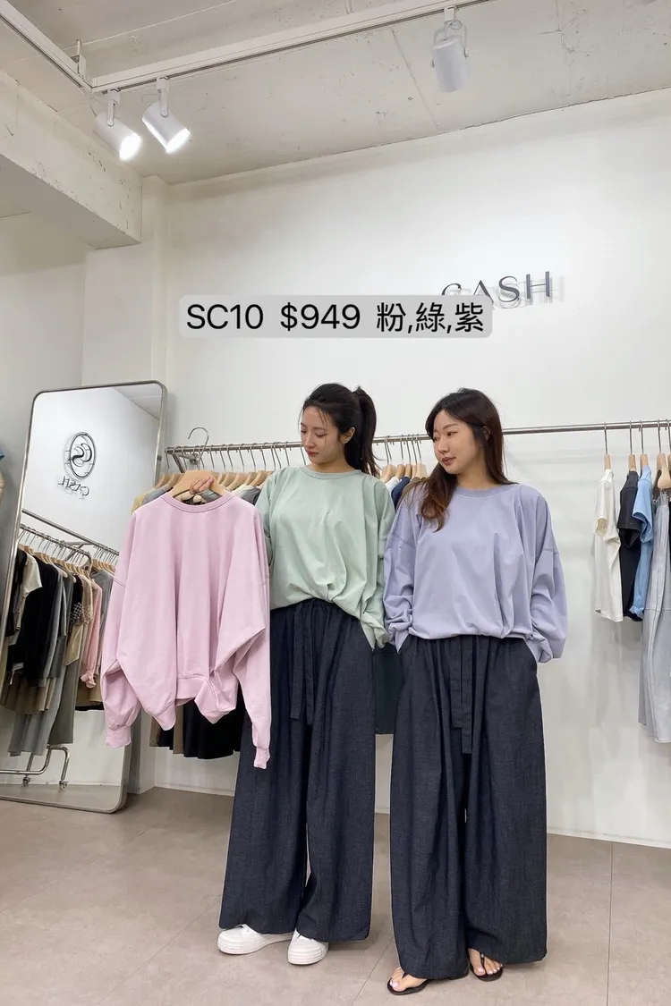 SC10 下擺鬆緊圓領車線長袖上衣