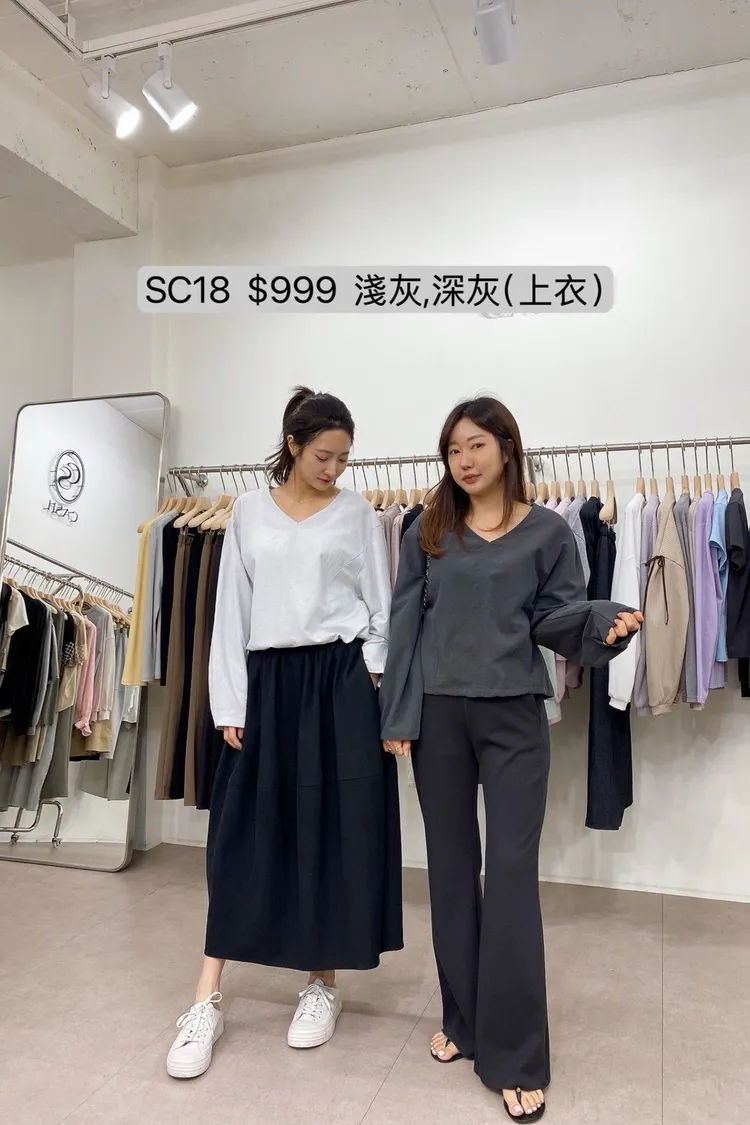 SC18 下擺抽繩鬆緊V領長袖上衣