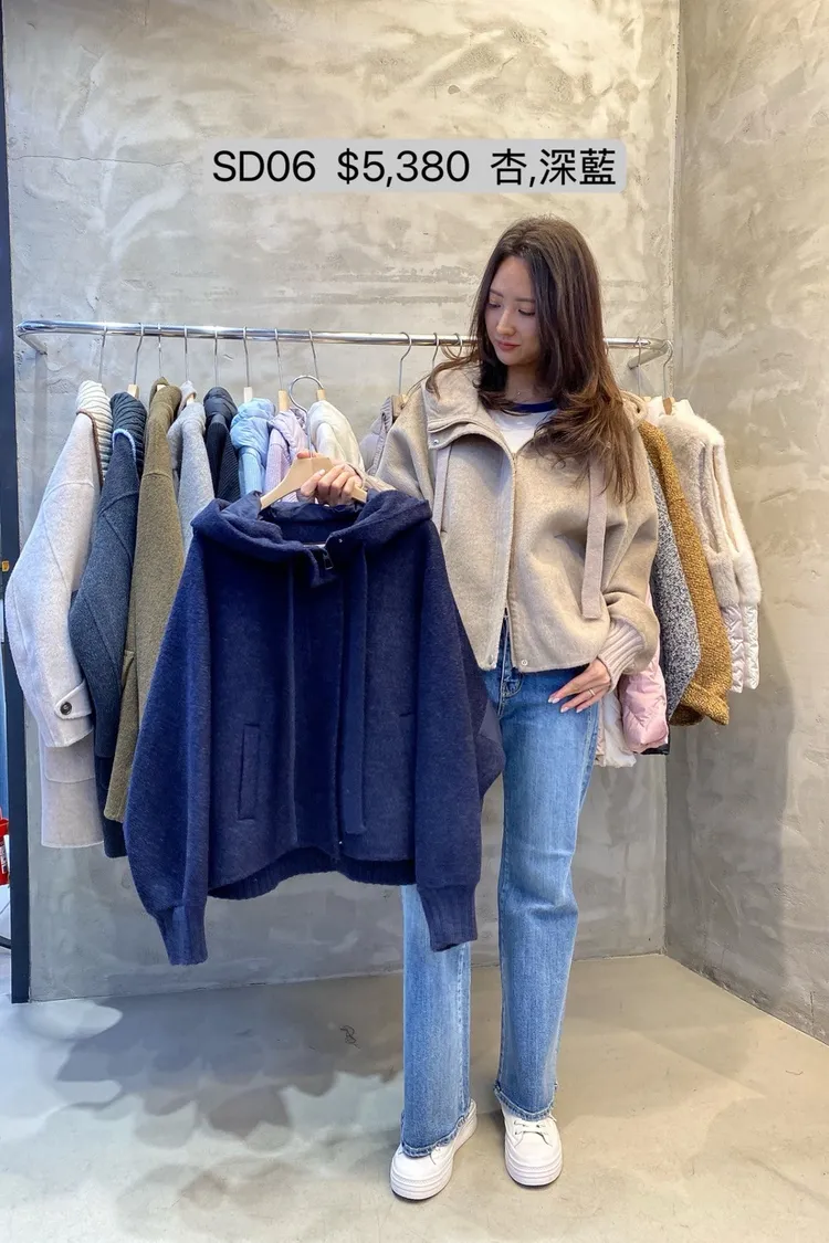 SD06 鵝絨拼接連帽雙拉鍊抽繩羅紋袖口羊毛外套
