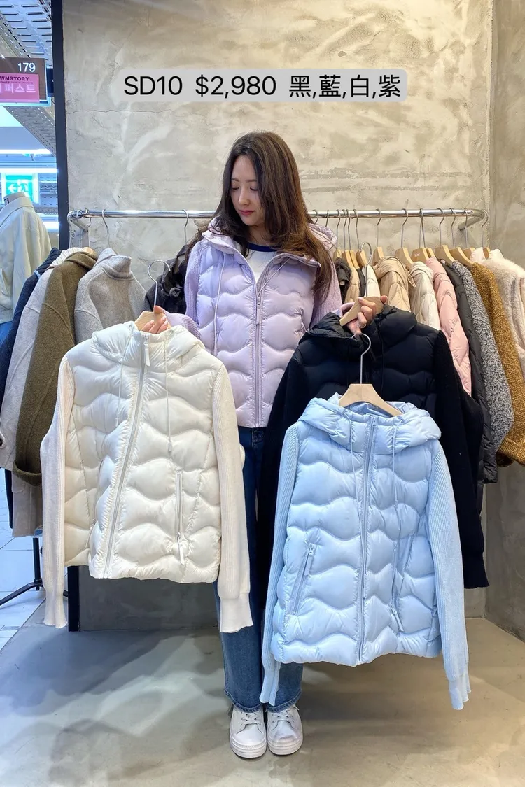 SD10 連帽抽繩坑條袖鵝絨拉鍊外套