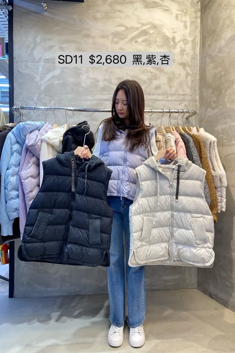 SD11 針織連帽抽繩鵝絨背心拉鍊外
