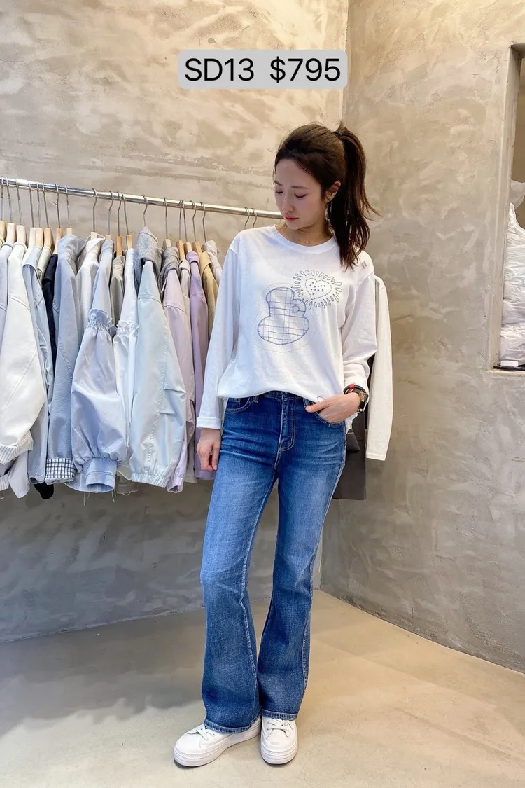 SD13 車線感印花長版薄上衣