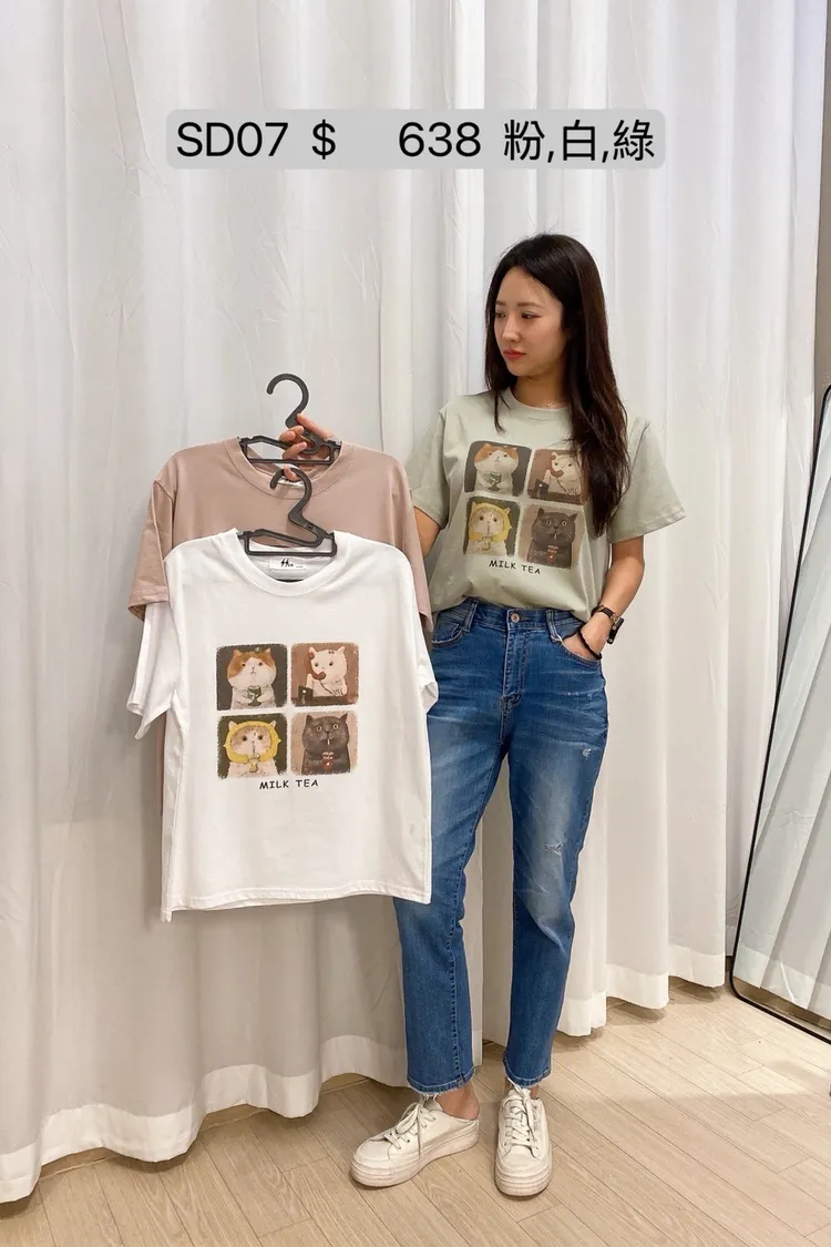 SD07 Q版貓咪印花圓領T