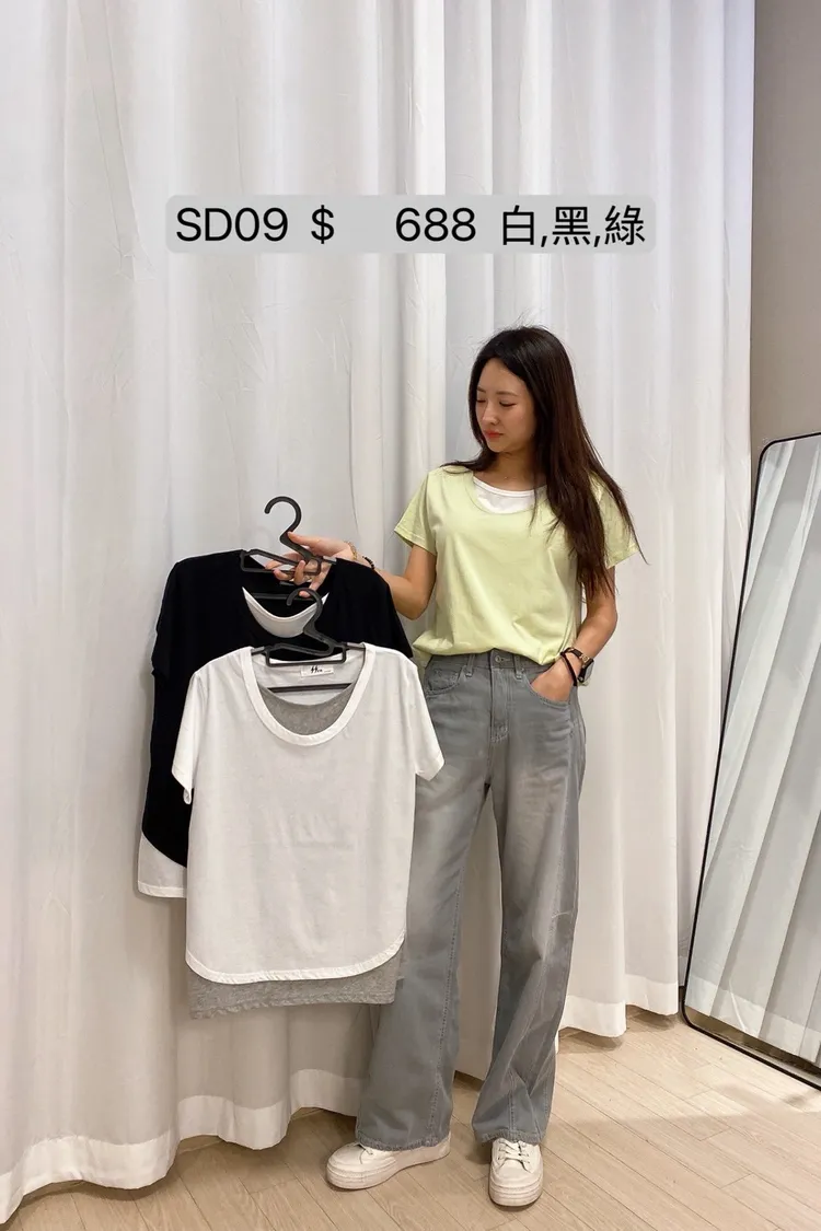 SD09 撞色假兩件圓領T
