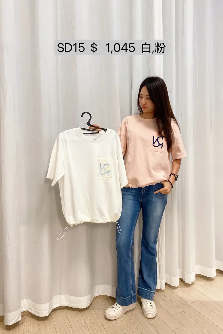 SD15 下擺抽繩刺繡口袋短袖上衣