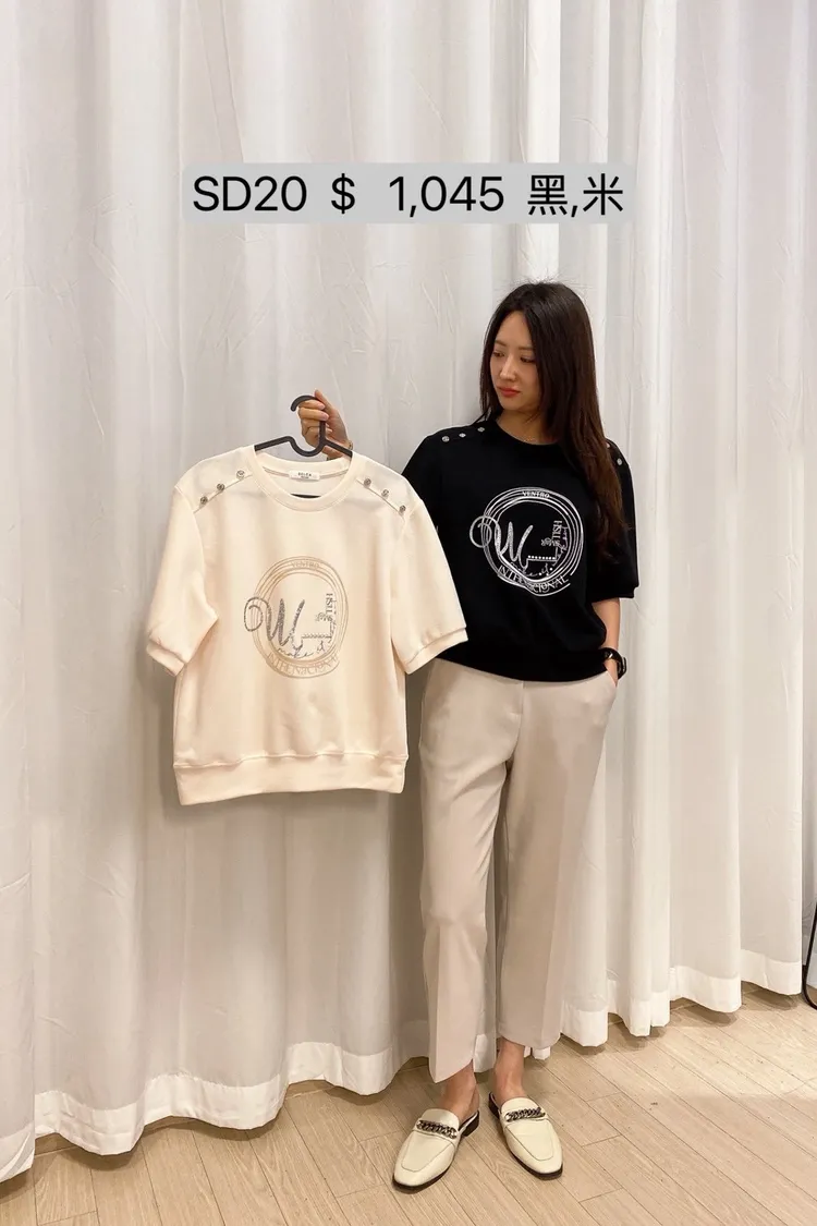 SD20 金屬扣亮字母印花短袖上衣