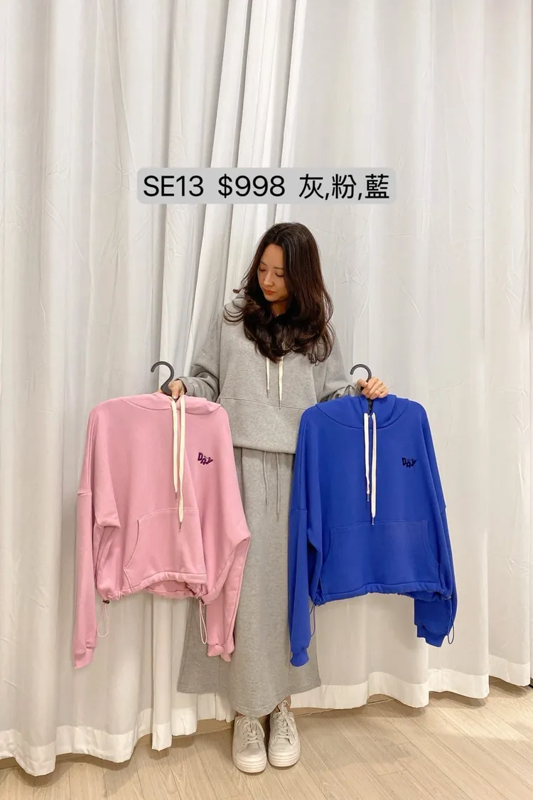 SE13 連帽抽繩刺繡字母長袖上衣