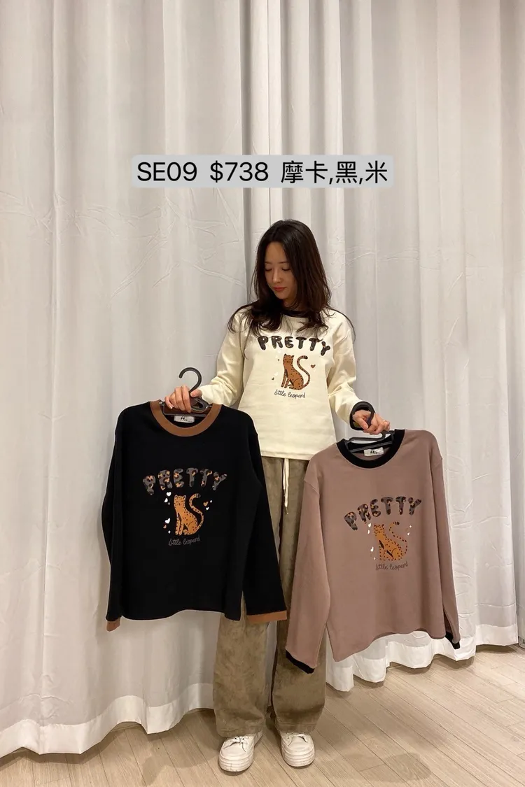 SE09 可愛豹印花撞色邊長袖T