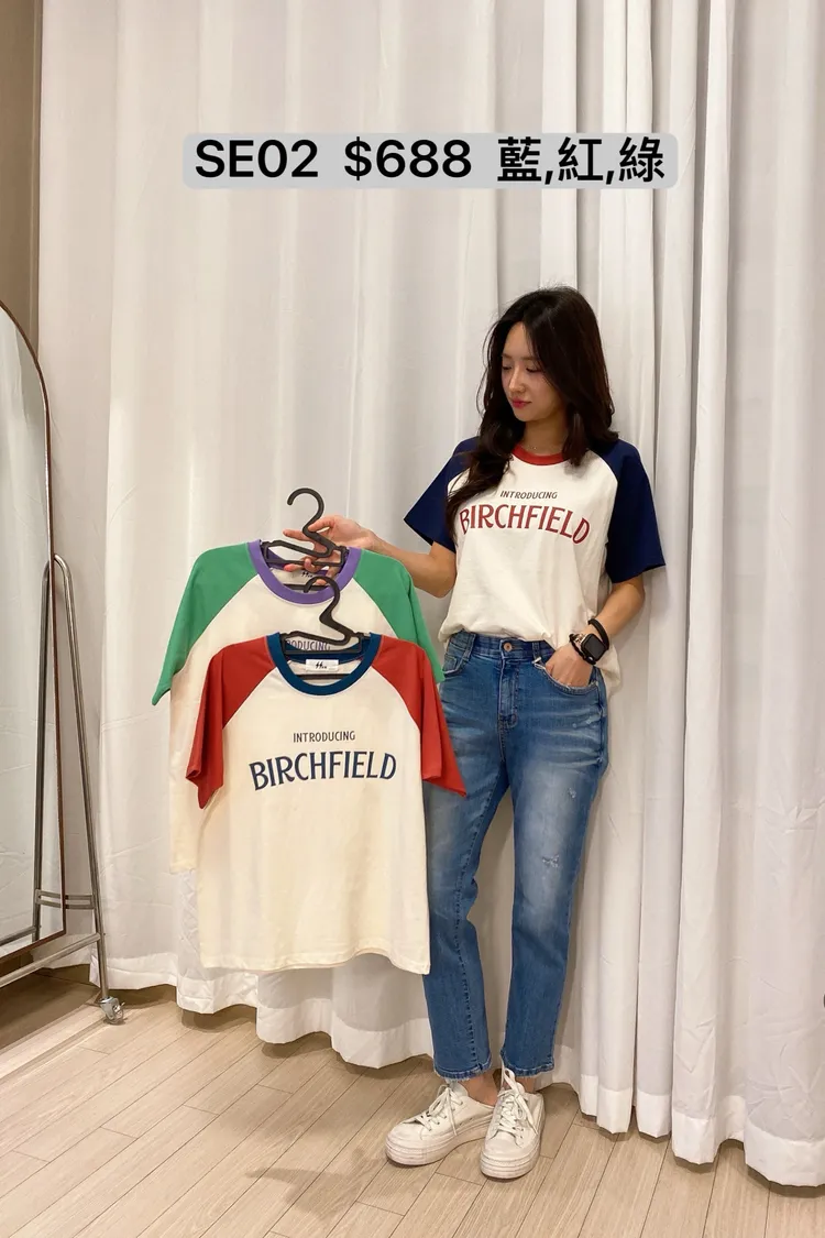 SE02 撞色袖字母T
