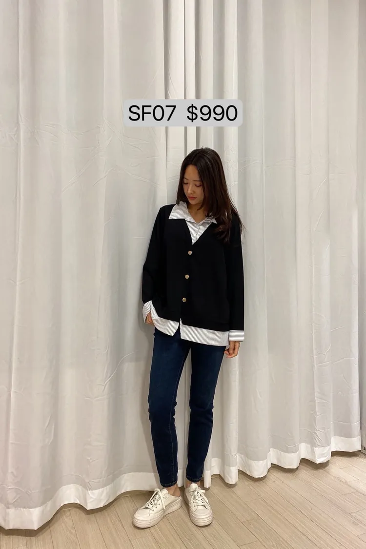 SF07 條紋布假兩件上衣