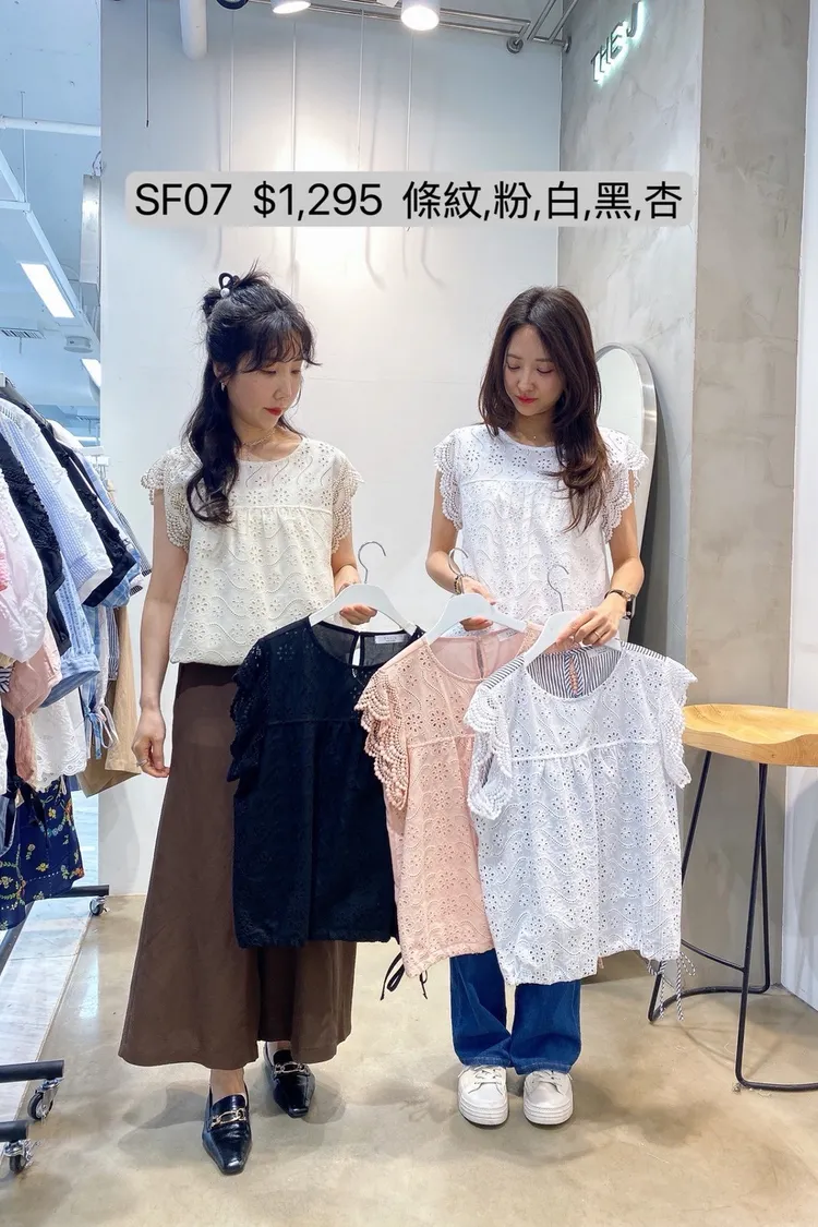 SF07 蕾絲微蓋袖滿版燒花上衣