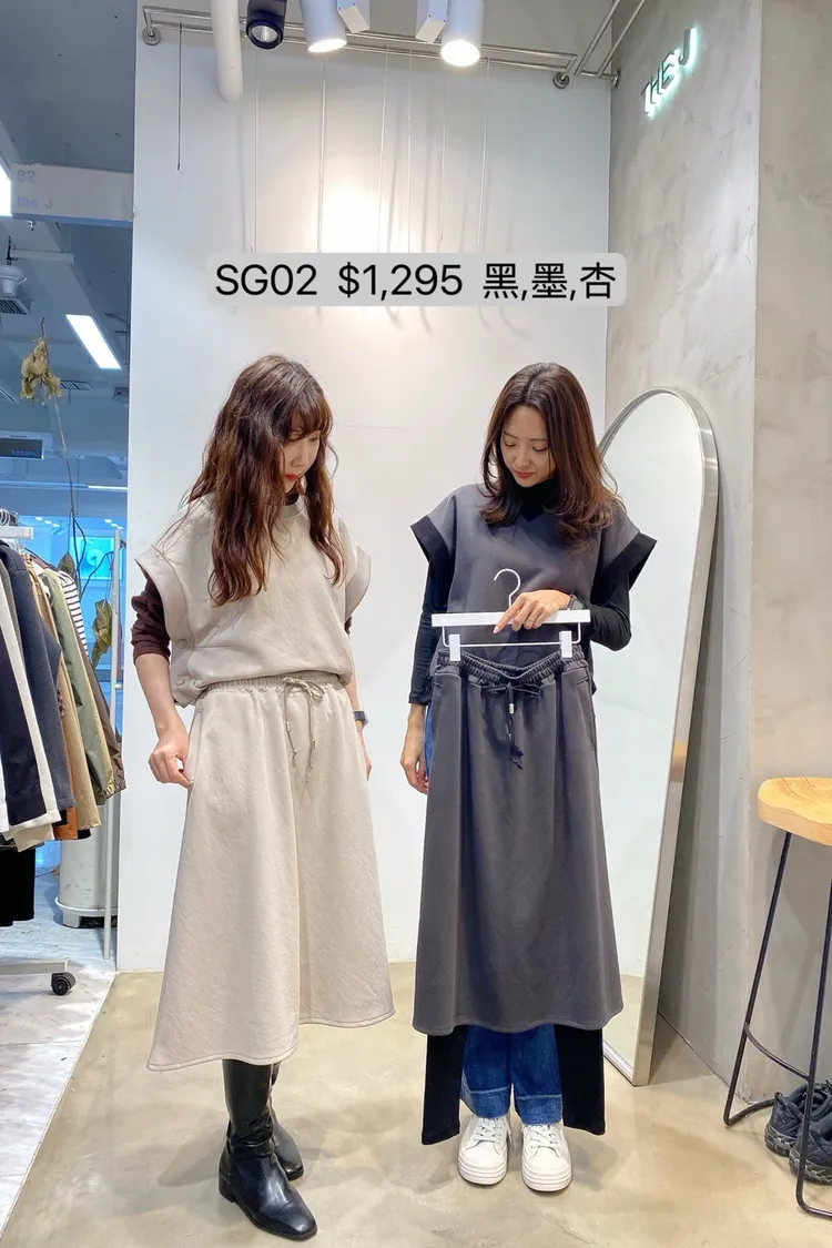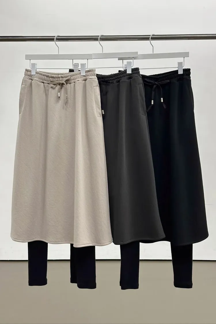 SG02 假兩件內搭褲拼接全鬆緊抽繩長裙