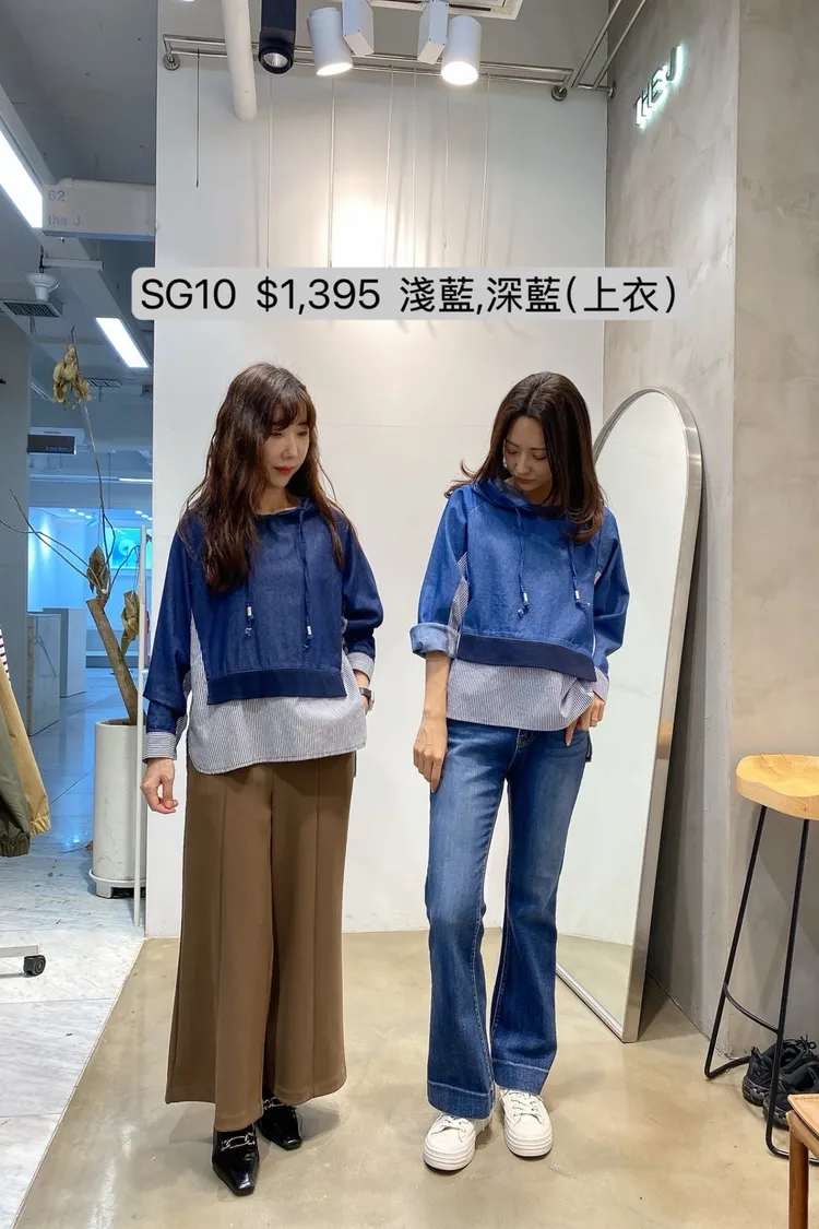 SG10 異材質拼接連帽條紋上衣