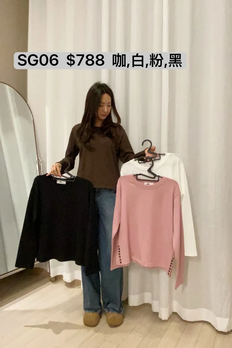 SG06 下擺扣子開岔竹節棉磨毛T