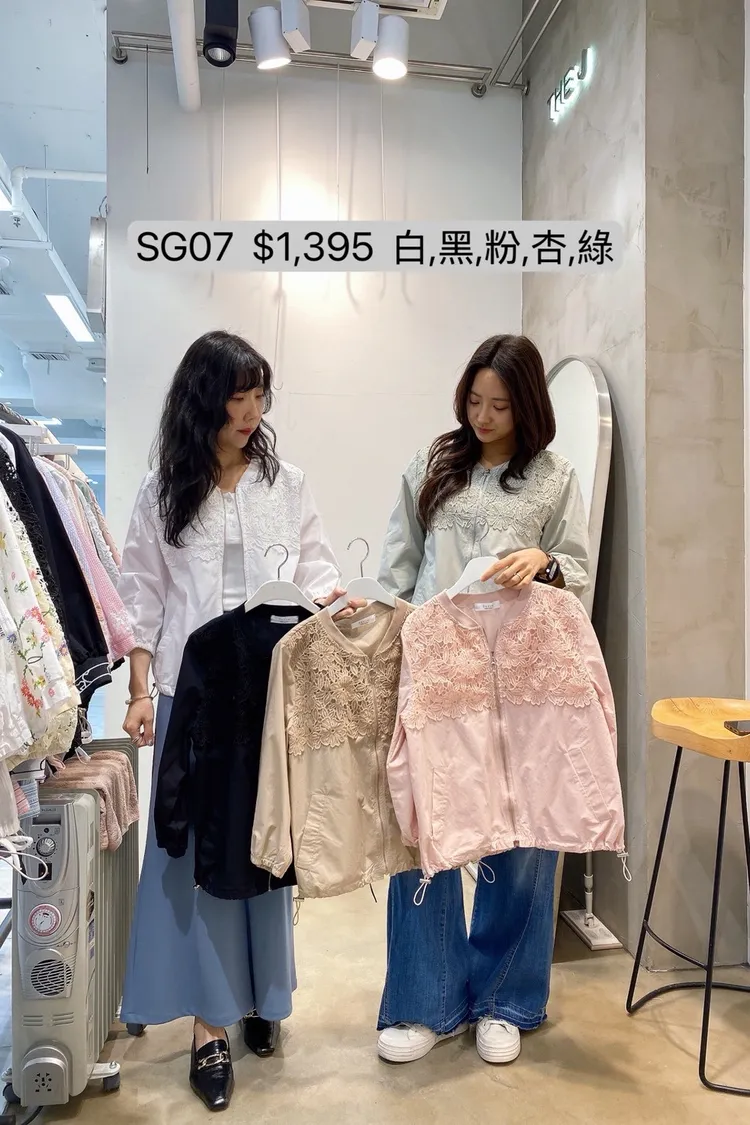 SG07 胸口緹花蕾絲拉鍊外套
