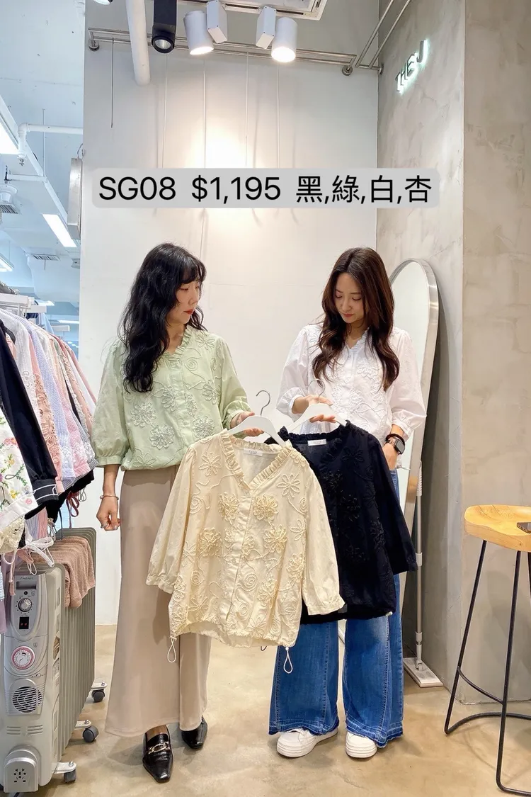 SG08 波浪V領立體花六分袖上衣