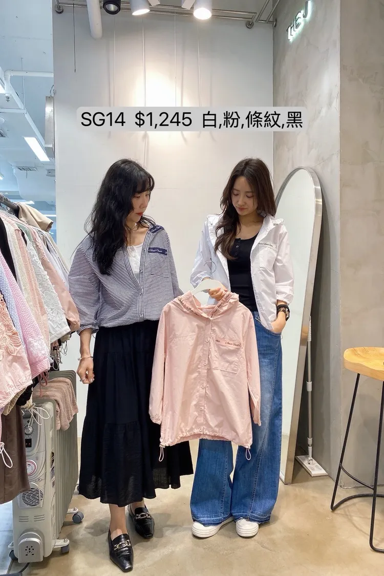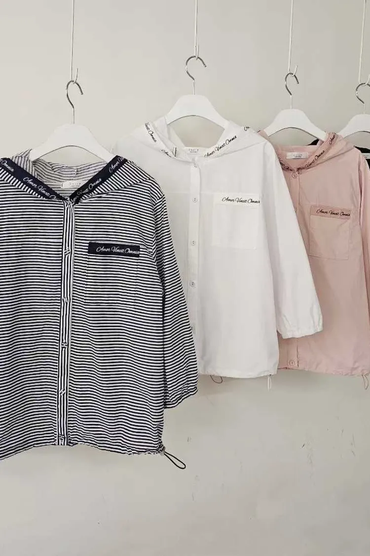 SG14 連帽字母抽繩排扣六分袖上衣