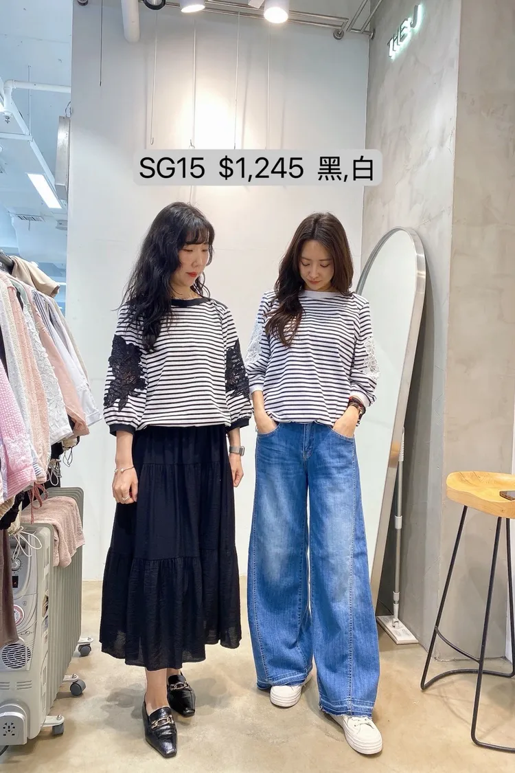 SG15 袖子鏤空緹花條紋上衣