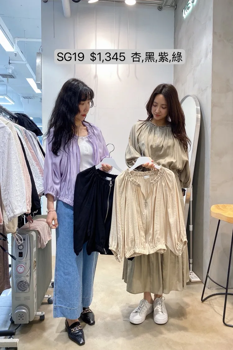 SG19 抓褶七分袖拉鍊外套
