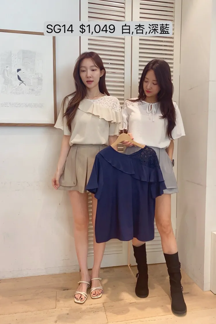 SG14 單肩透膚蕾絲綁帶上衣