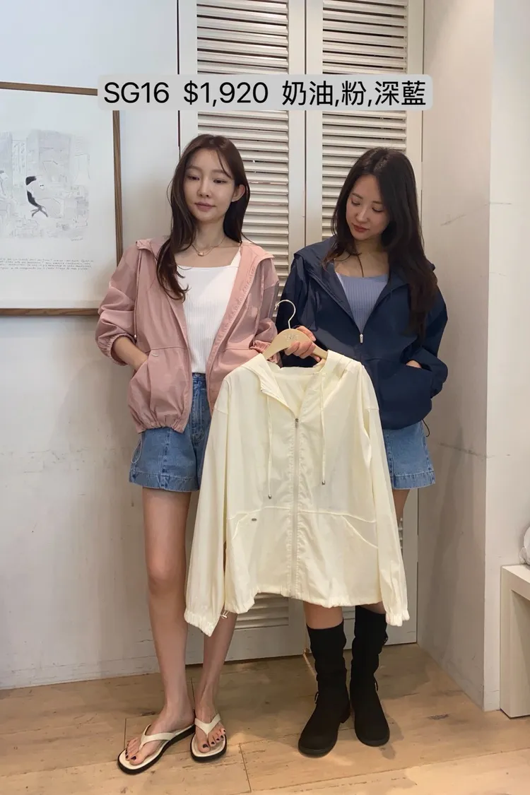 SG16 連帽抽繩小LOGO拉鍊防曬外套