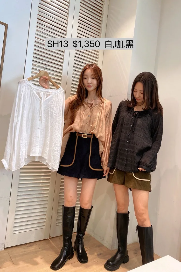 SH13 綁帶線條壓痕絲質長袖襯衫