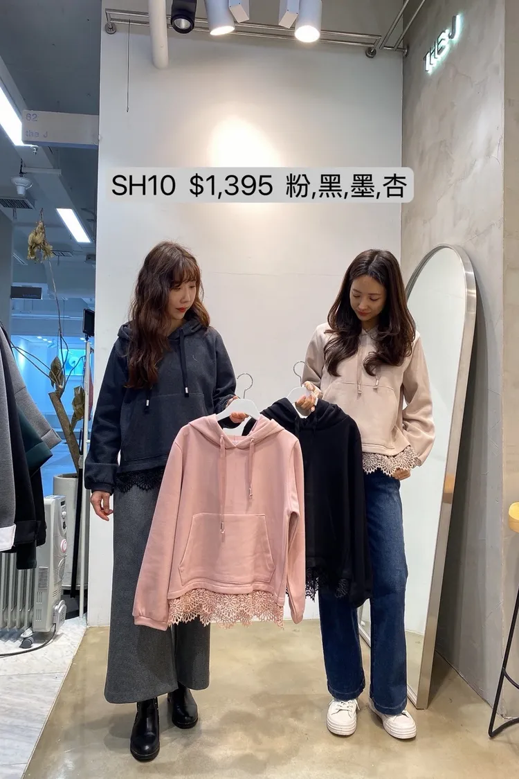 SH10 下擺鋸齒蕾絲連帽抽繩上衣