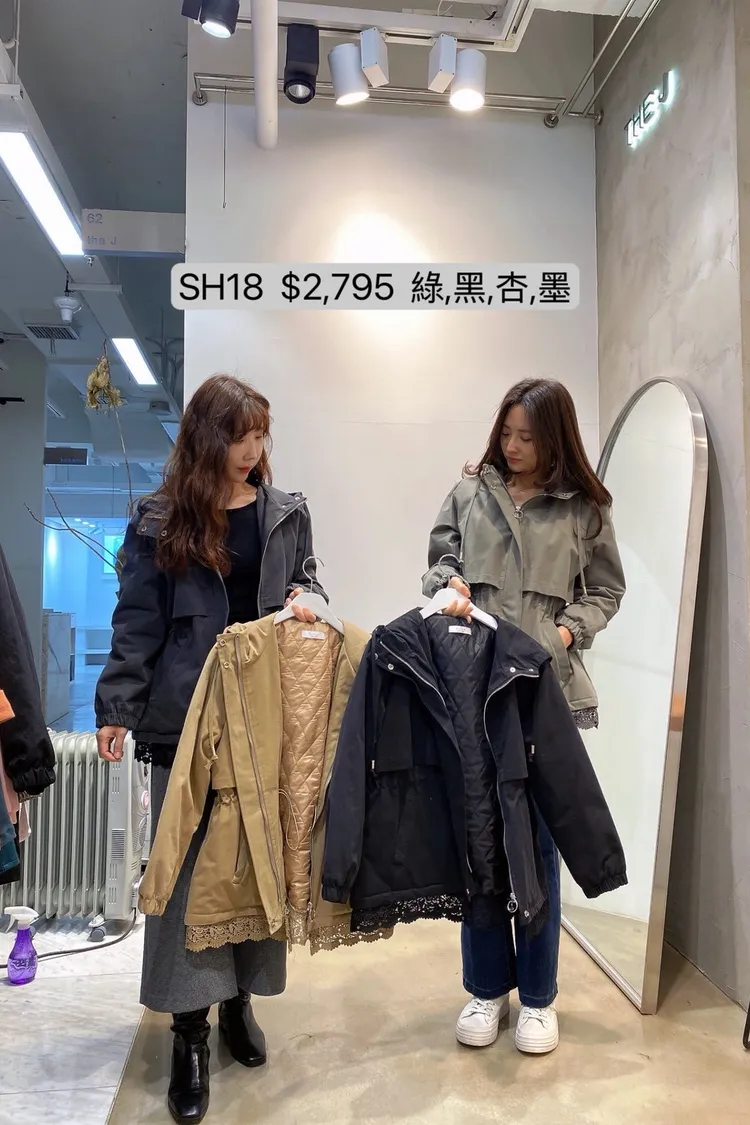SH18 連帽抽繩下擺蕾絲內裡鋪棉外套