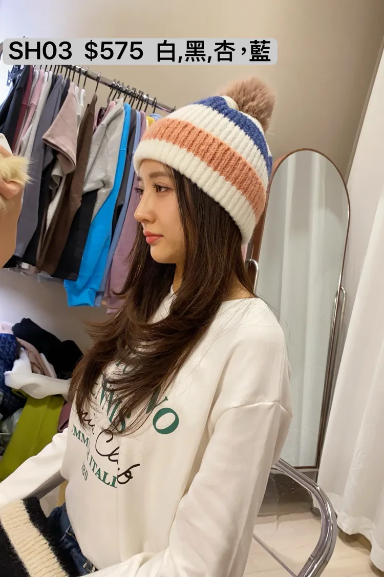 SH03 可拆毛球多色條紋帽 (羊毛9)