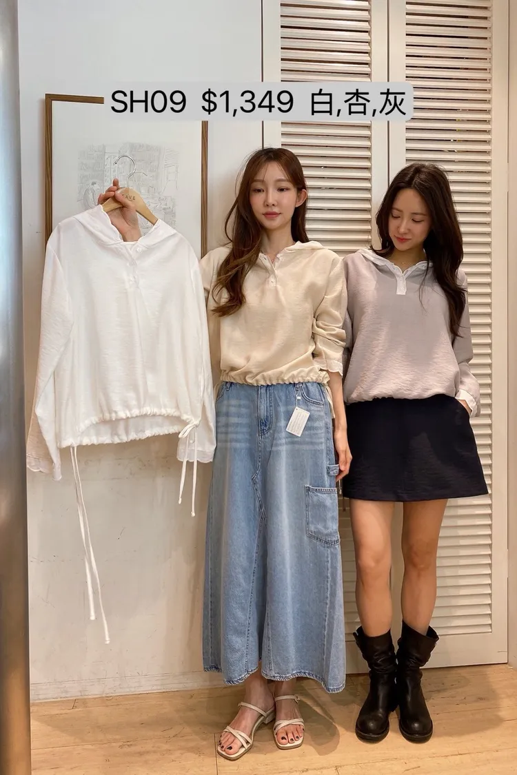 SH09 下擺抽繩異材質連帽上衣