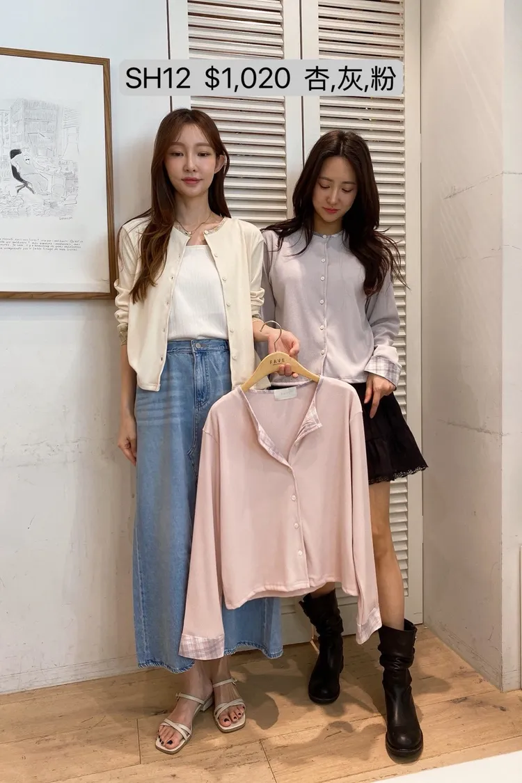 SH12 異材質格紋排釦上衣