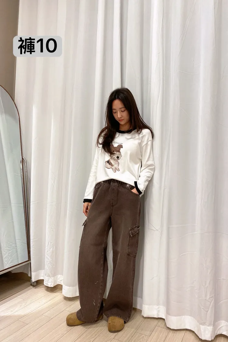 褲10 全彈性鬆緊腰工裝牛仔寬褲
