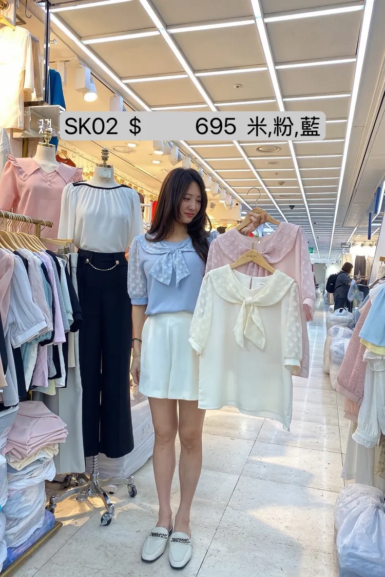 SK02 綁結透膚袖雪紡上衣