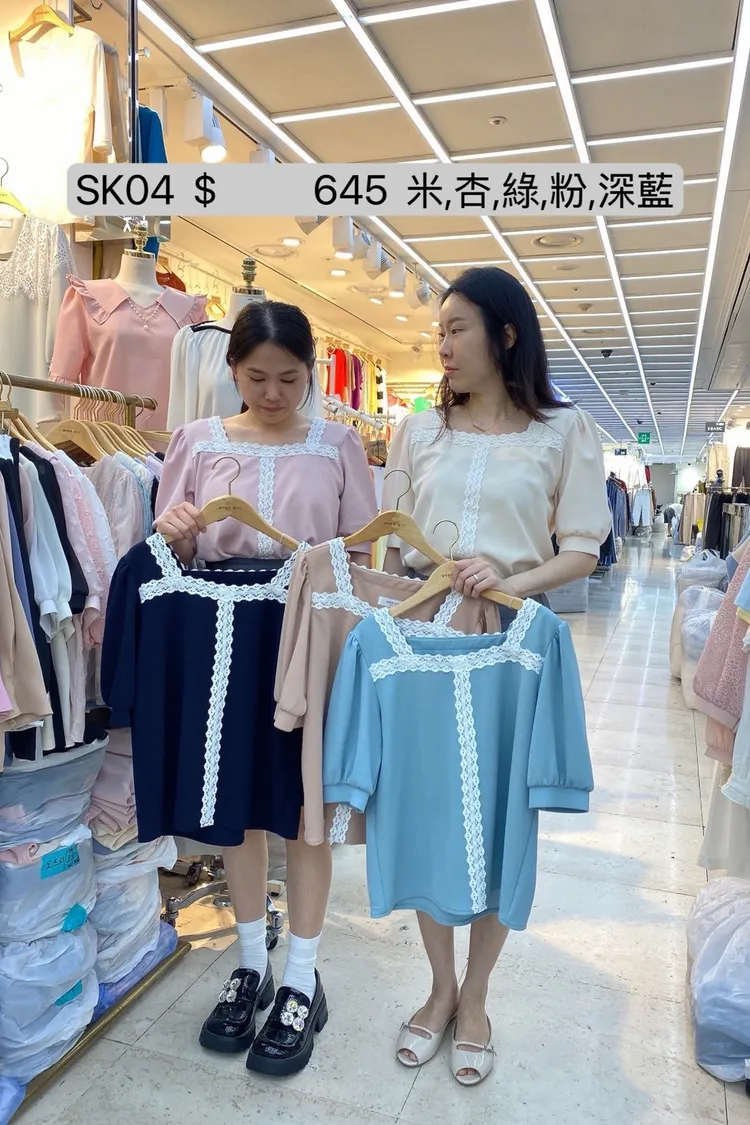 SK04 蕾絲拼接方領上衣