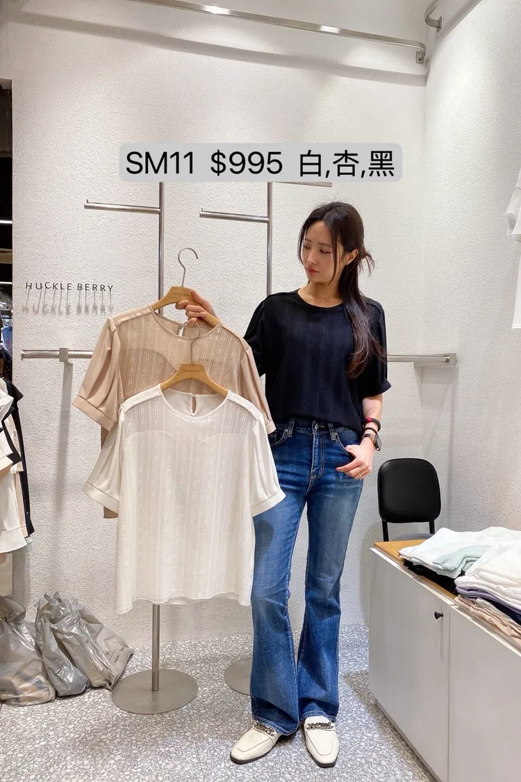 SM11 線條蕾絲拼接短袖上衣