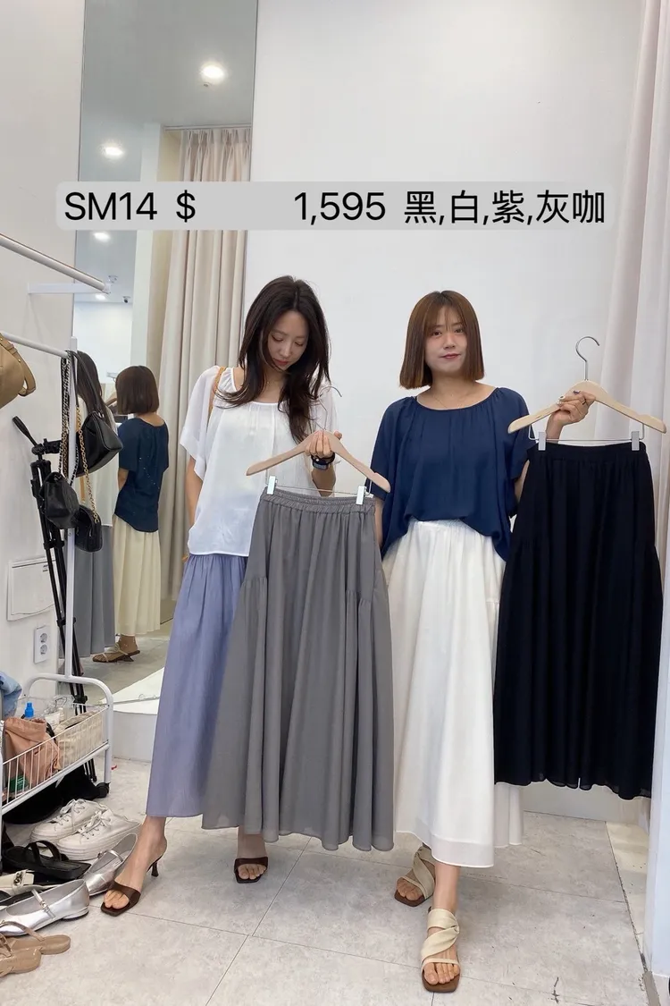 SM14 全鬆緊抓褶剪裁天絲長裙