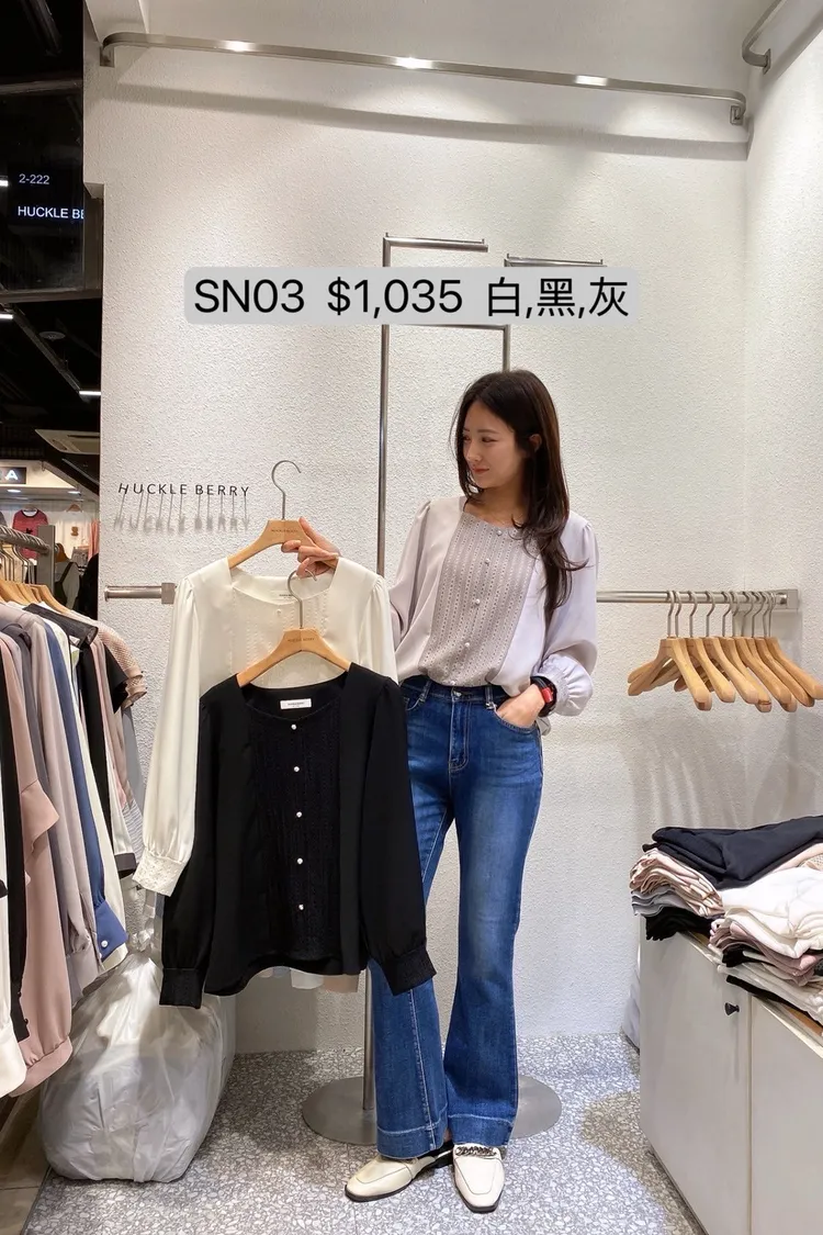 SN03 方領洞洞蕾絲珍珠扣上衣